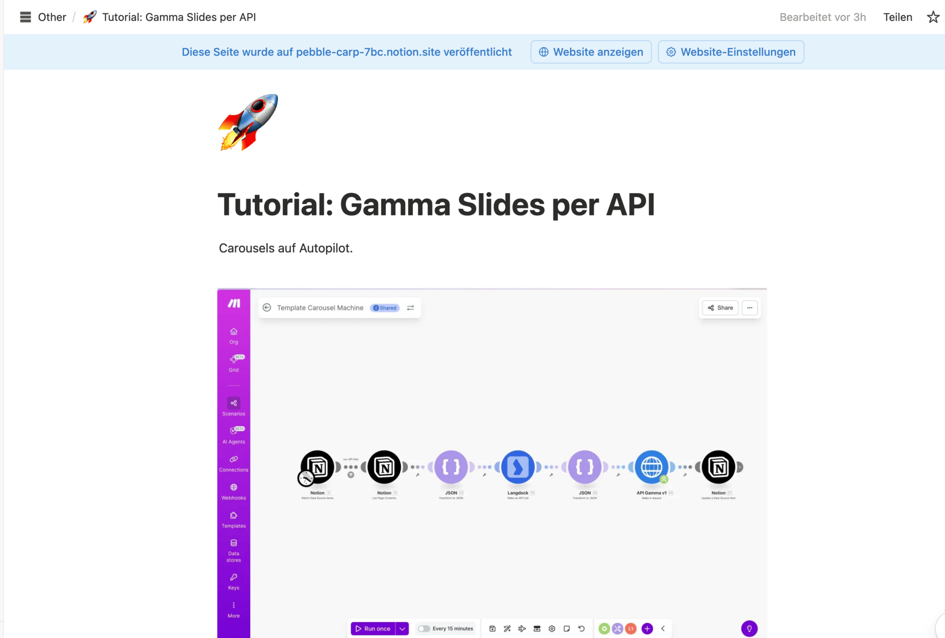 Mein Tutorial liegt auf Notion und ich kann mit einem Klick publishen.