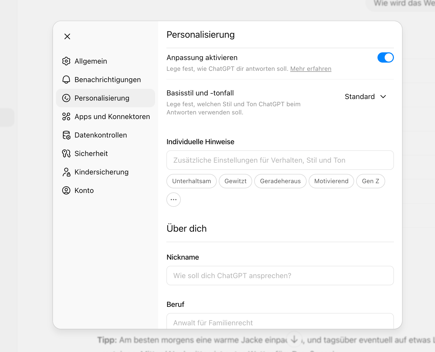 Die Lösung: Einmal Personal Instructions einrichten - für immer bessere Antworten.