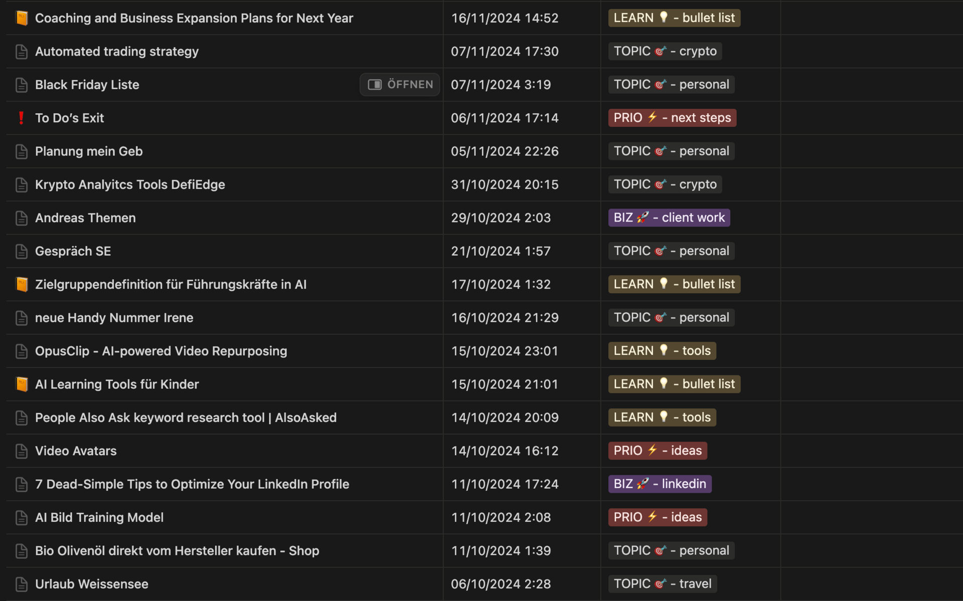 Hunderte Einträge, komplett unstrukturiert. Projektideen neben Einkaufslisten, wichtige Business-Notizen neben zufälligen Gedanken.