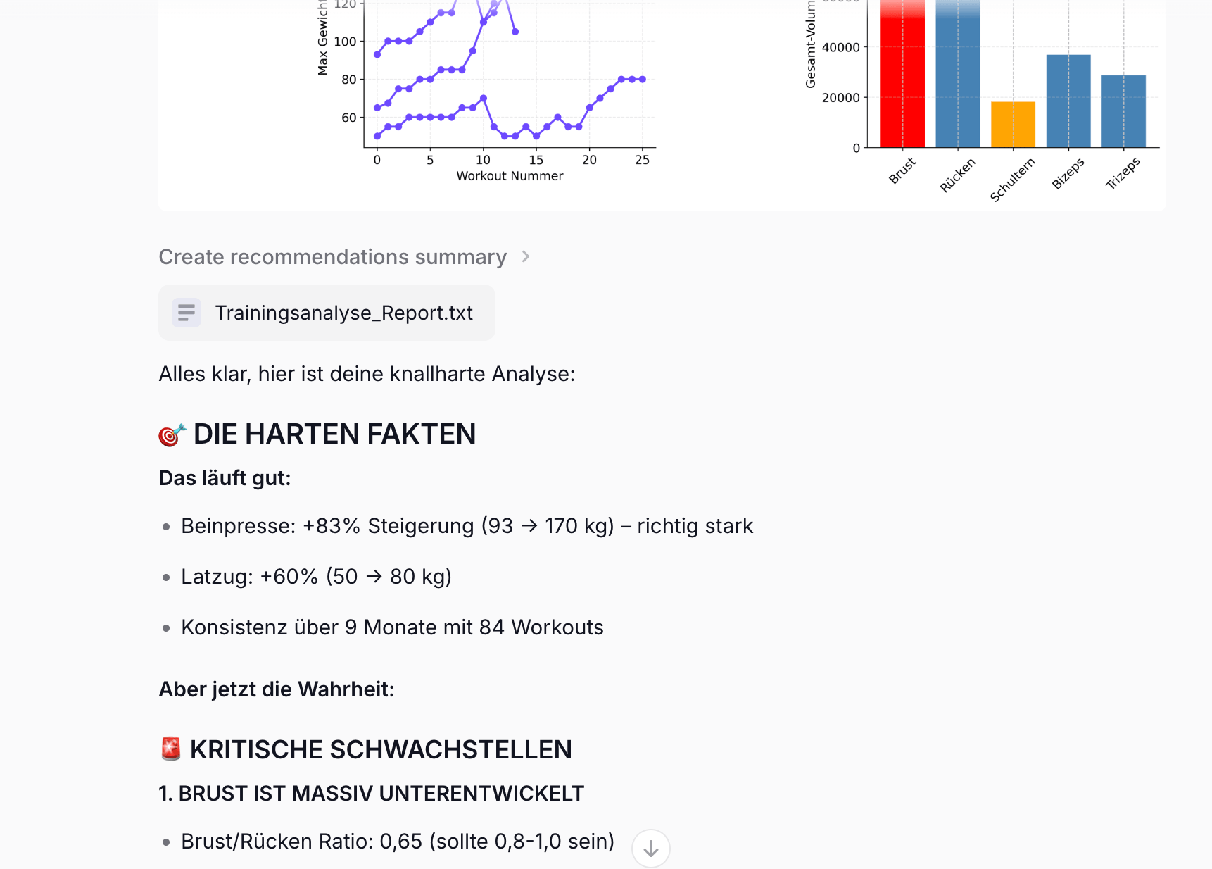 Die AI feiert erst deine Erfolge (gut fürs Mindset!), zeigt dir dann aber schonungslos, wo du noch Luft nach oben hast.